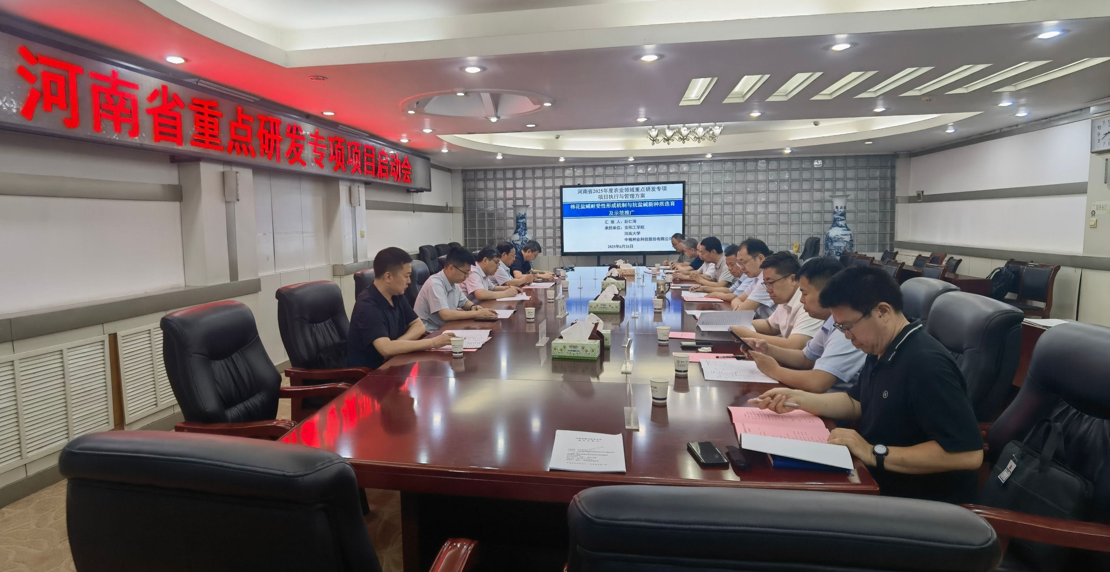 6月26日,河南省2025年度农业领域重点研发专项“棉花盐碱耐受性形成机制与抗盐碱新种质选育及示范推广”项目启动会在行政楼二楼会议室召开。安阳市科技局一级调研员李洪,安阳市重点研发专项管理专员崔志鹏,河南科技学院教授王清连,中国农业科学院棉花研究所研究员何守朴,河南大学教授高巍参加会议。项目及课题单位安阳工学院副校长彭仁海,中棉种业股份有限公司研究员马雄风、副研究员王强,河南大学教授蔡应繁,我校副校长刘林、911吃瓜爆料视频在线观看处长张勇等参加会议。