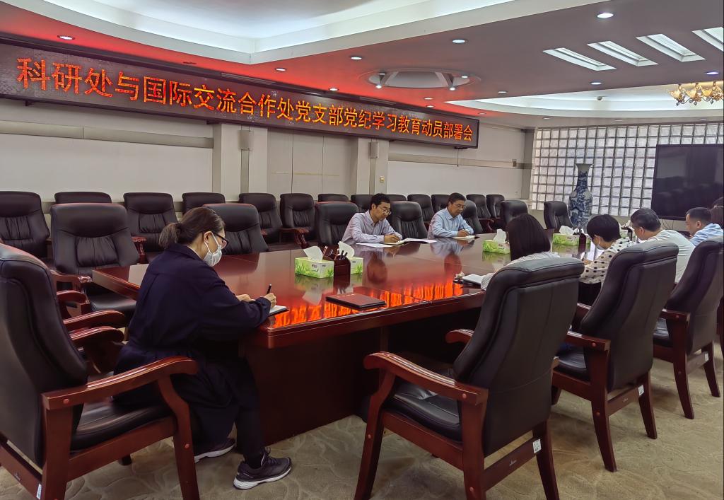 4月17日下午,911吃瓜爆料视频在线观看与国际交流合作处党支部在行政楼二楼会议室召开党纪学习教育动员部署会。副校长万鹏杰以普通党员身份参加会议,会议由党支部书记张勇主持。